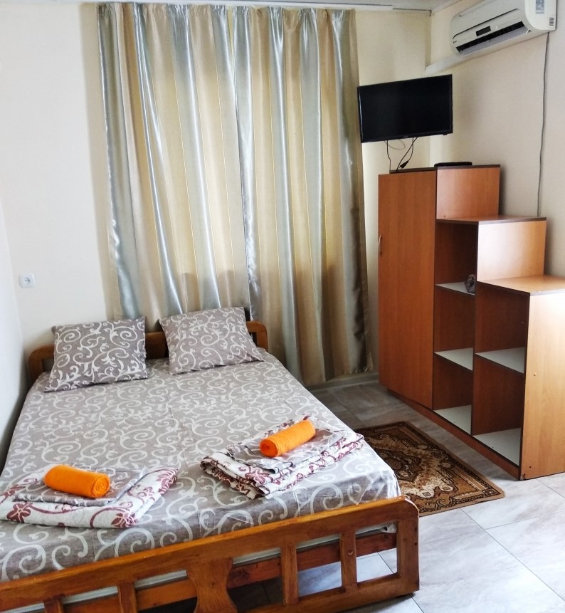 В каждом номере: санузел, унитаз, раковина, душевой отсек, зеркало, туалетные принадлежности (мыло и туалетная бумага), полотенца (2 шт.на человека), бойлер. Холодная и горячая вода постоянно. Замена постельного белья раз в 5 дней, уборка номеров и вынос мусора каждый день.