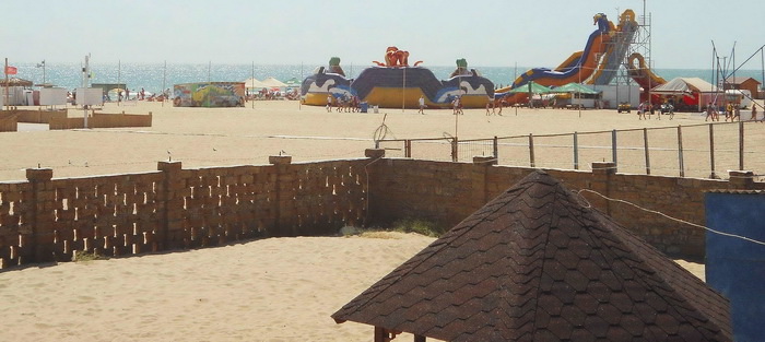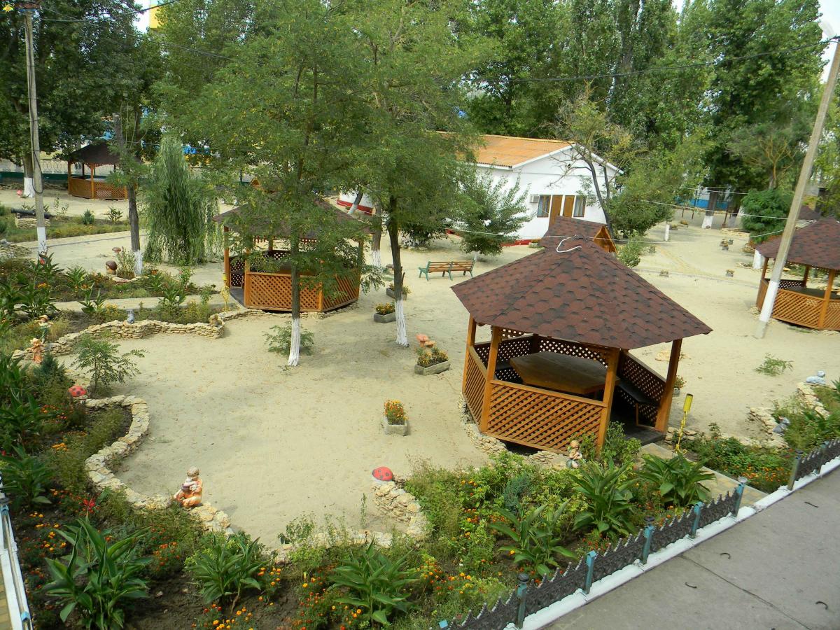 Трехэтажные корпуса базы выстроены прямо на границе c песчаным пляжем шириной 150 метров. С балконов номеров открывается прекрасный вид на море и территорию базы. Территория благоустроена. Работает аниматор, проводятся дискотеки, есть игровые, спортивные площадки. Оборудована площадка для пикников с мангалами. Территория базы охраняется, вход и выход осуществляется строго по браслетах. На базе так же есть столовая, где по желанию отдыхающих можно приобрести вкусное 2-х или 3-х разовое питание. Питание отличное. Стоимость 3-х разового - 10 долл.США. Все отзывы положительные.
