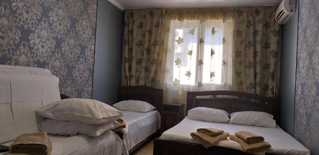 Размещение: 2-5ти местные просторные номера со всеми удобствами: кровати, кондиционер, телевизор, холодильник, душ, туалет
