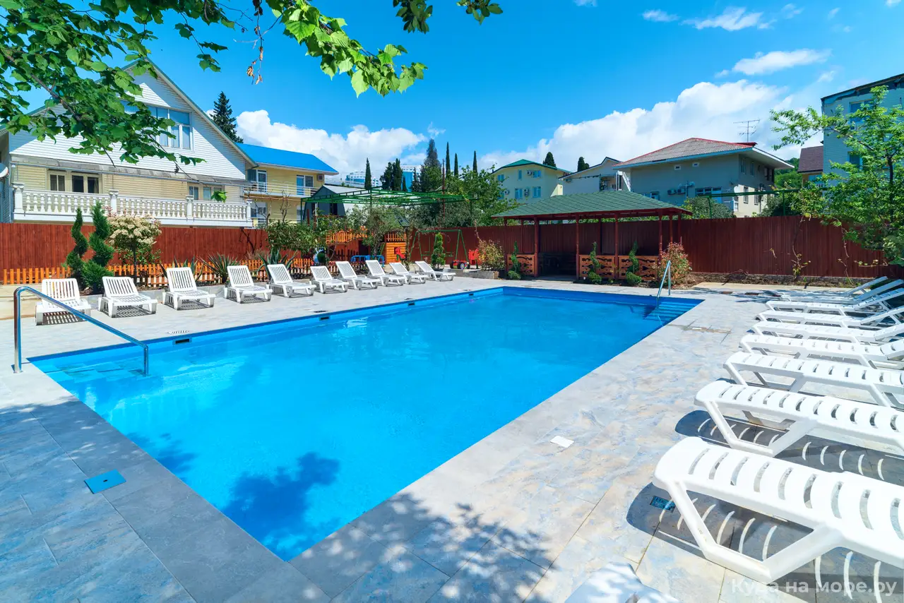Название отеля выбрано не зря, отель окружен изумрудно-зеленым садом из субтропических растений. Благодаря близкому расположению к морю вы сможете насладиться целебным морским воздухом.